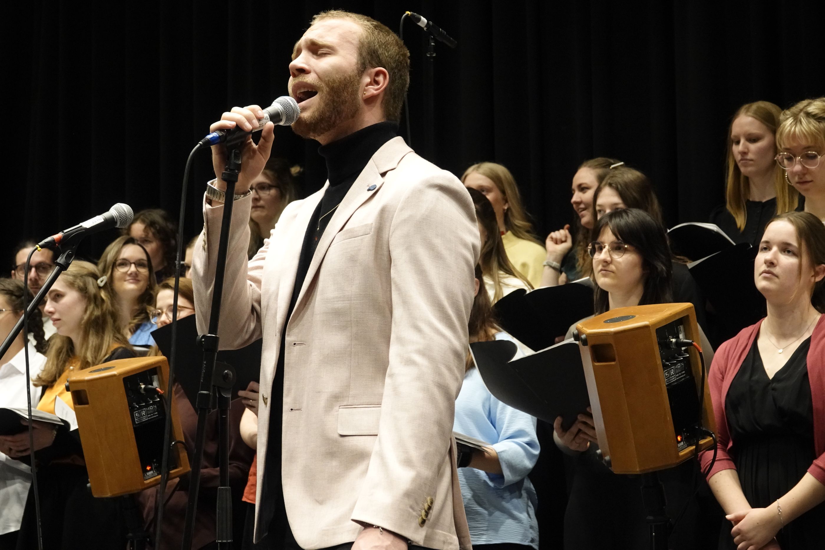 Mit schauspielerischem Können und Humor präsentierten die Bachelorstudierenden des Wahlfachs Theaterwerkstatt abwechslungsreiche Szenen. Der PH-Chor mit 35 Sängerinnen und Sängern ergänzte das Bühnengeschehen stimmgewaltig und gekonnt mit bekannten und weniger bekannten Liebesliedern aus Musicals.